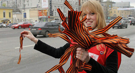 Cette tendance se renforce en 2005 dans la Russie poutinienne car, depuis cette année, la veille du 9 mai, Jour de la Victoire, des milliers de rubans (appelés par la forme diminutive георгиевская ленточка, gueorguiïevskaïa lentotchka) sont distribués gratuitement dans les rues de Moscou.