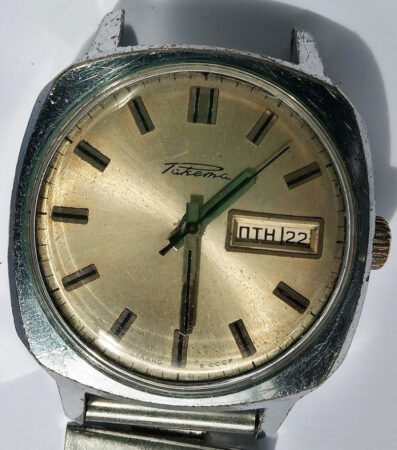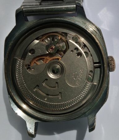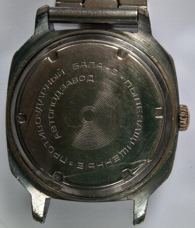 Gravure sur le fond : автоподзавод (remontage automatique) avec le symbole d’une masse oscillante, противоударные бaлaнз (mouvement antichoc) пылевлагозащищенные (étanche à l’eau et à la poussière)
