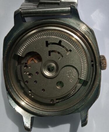 Mentions sur le calibre : n° de série (16116) et logo Raketa (raquette symbolisée) sur la platine, 2627.H sur un pont, le logo Raketa apparaît en évidé sur la masse oscillante.