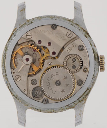 Le boitier porte la mention ленинград (Léningrad) mais il ne s’agit pas d’une ленинград, il s’agit d’une Pobeda commémorative.