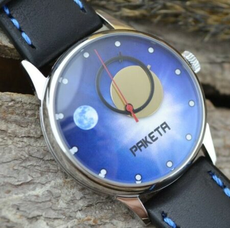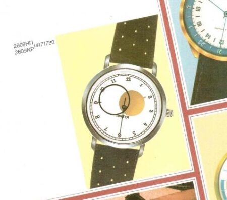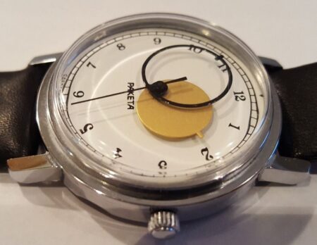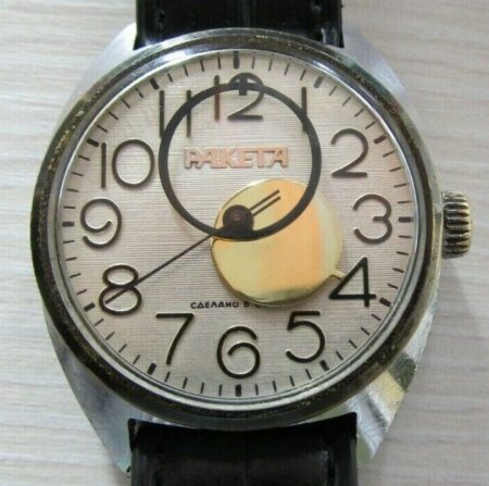 Modèle emblématique de Raketa, apparu dans la première moitié des années ’80 et encore produite quelques années après la chute de l’URSS.