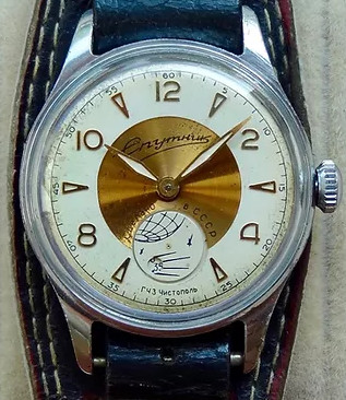 Montre bracelet спутник (Spoutnik) de Fabrique de Montre de Tchistopol type ЧH-200 modèle (oформление) III, mécanique, à petite seconde, commémorative.