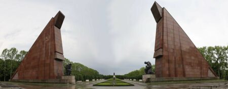 Cette statue culmine Le Mémorial soviétique du Treptower Park, à Berlin. Ce mémorial est dédié aux 10,7 millions soldats de l’Armée rouge tombés lors de la Seconde Guerre mondiale. Érigé en mai 1949, il fut construit à l’initiative de l’Armée soviétique et est l’œuvre d’artistes d’URSS. Le mémorial abrite également la sépulture de 4 800 soldats soviétiques, tués au cours des derniers jours de la bataille de Berlin en mai 1945.