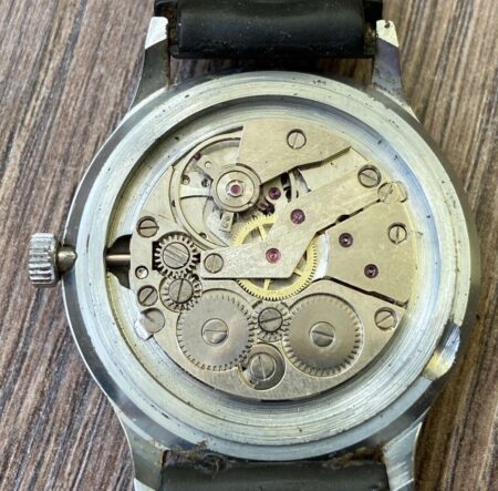 Mentions sur le cadran : 21 jewels (sous l’axe des aiguilles), Made in USSR (à six heures)