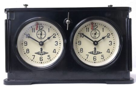 La Fabrique d’Horloges d’Orel était devenue la productrice des horloges destinées aux joueurs d’échecs, et cela sous sa marque habituelle: Yantar (Янтарь, ambre).