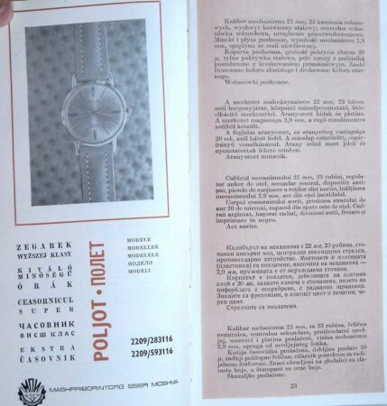 Au catalogue « Zegarki SSSR » (export en Europe de l’Est) 1968: