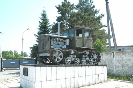 L’engin est un tracteur chenillé ДТ-54 dont la production avait commencé en 1949 à la Fabrique de Tracteurs de Stalingrad et à la Fabrique de Tracteurs de Kharkov. Cet engin emblématique de l’industrie et de l’agriculture mécanisée soviétiques allait devenir le principal symbole de la campagne des Terres vierges. 880.792 ДТ-54 ont été produits…