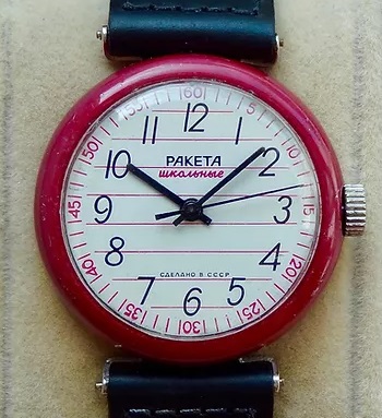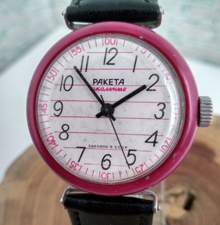Marque: Raketa avec la « Школьные » (« Skolnié »: « école ») en dessous.