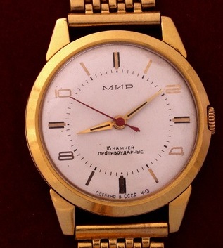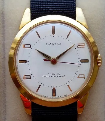 Montre-bracelet, mécanique de marque Мир (Mir, « Paix ») de la Fabrique de Montre de Tchistopol