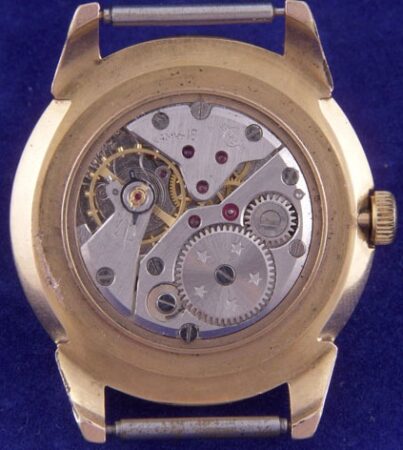 Mentions sur le calibre : N° de série (53488) sur la platine, logo de l’usine et камней 18 sur un pont, cinq étoiles sur le rochet.