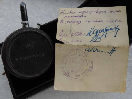 Ce tachymètre modèle 9ЧП a été produit par la Troisième fabrique de Montres de Moscou au cours du 2e trimestre 1953, à l’époque où elle s’appelait encore Fabrique pilote d’instruments du Chasprom, ce qui explique les initiales ИЧ du logo sur le mécanisme. Son n° de série est 05037.