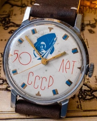Montre-bracelet commémorative de la Fabrique Maslenikov célébrant les 50 ans de l’URSS.