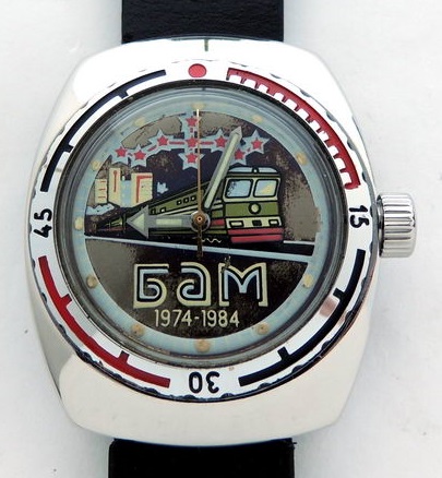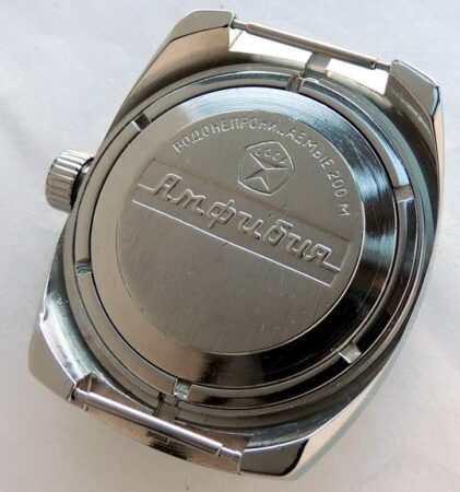 Gravure sur le fond : Амфибия, водонепроницаemыe 200M (étanche à 200 mètres), marque de qualité de l’URSS.