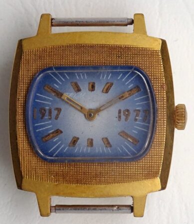 Montre bracelet, mécanique, à petites secondes, commémorant les 60 ans de la révolution d’Octobre, produite par la Fabrique de Montres Maslenikov