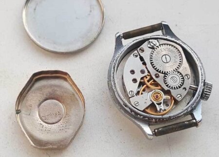 Mentions sur le calibre : 1601A et 17 JEWELS sur le rochet et SU sur le pont