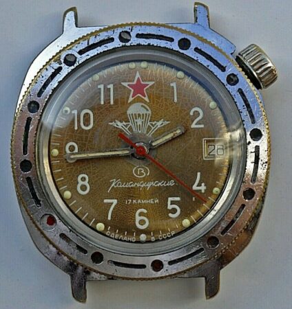 Mentions sur le calibre : logo Vostok (B dans un cercle)