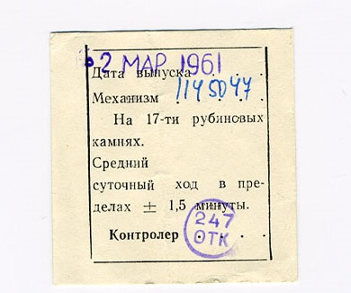 Mécanisme : ЧK-14M à 17 rubis