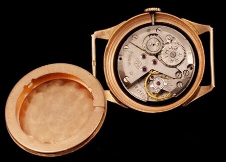 Boîtier de laiton en or massif type « crabe », fond clipsé et poinçonné 583 (voir les poinçons soviétiques) et 63521