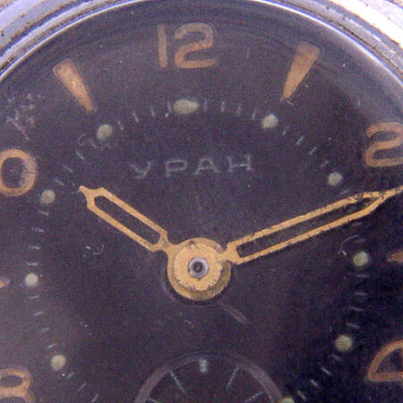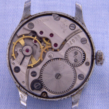 Mentions sur le calibre : n° de série (06672) sur un pont ancien logo de l’usine (ЧЧЗ dans un cercle bordé de chaque fois trois traits) et 15 камней (15 rubis) sur un autre. Côtes de Genève.