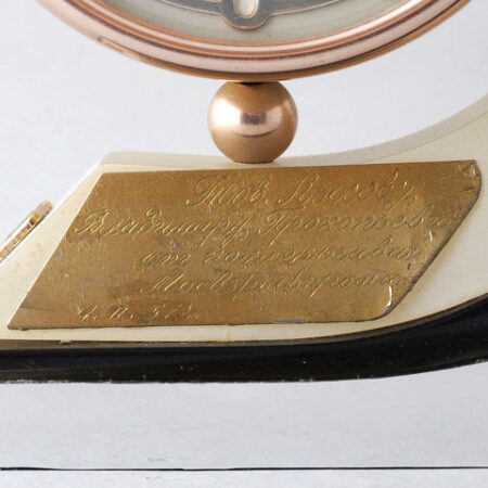 Avec une plaque gravée « Au camarade Vladimir Prokopievich Lysov du collectif de Mosvzryvprom le 04 novembre 1957 » [Mosvzryvprom était l’acronyme de l’industrie des explosifs de Moscou].