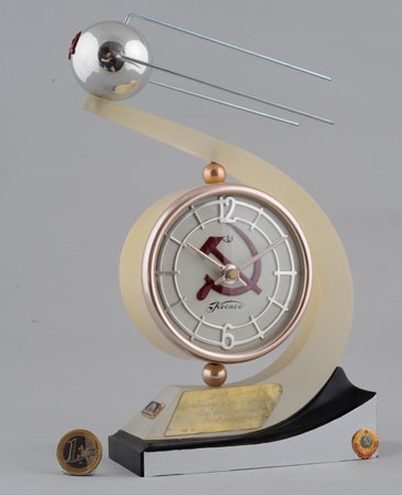 Horloge de propagande commémorant le lancement de Spoutnik.
