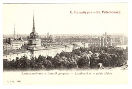 Le chantier initial de l’Amirauté de Saint-Pétersbourg a été construit en 1706 selon les plans de Pierre le Grand. À l’époque, elle était encore une structure en terre en forme de U avec un canal interne servant de chantier naval pour le développement de la marine russe. L’année 1719 marque la transformation de cette Amirauté en bâtiment en pierre . Son architecte Adrian Zakharov a également construit la tour avec la flèche couronnée de girouette en forme de frégate qui allait devenir l’un des symboles de la ville de Saint-Pétersbourg.