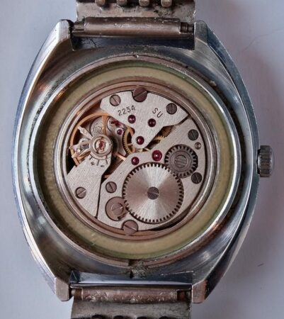 Mentions sur le calibre : N° de série du mécanisme (754021), SU (pour Soviet Union) et 2234