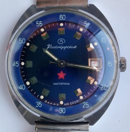 Cette mention apparue sur les Komandirskie a conduit à la légende (entretenue par des vendeurs peu scrupuleux) qu’il s’agissait de montres de service, de dotation, donc réservées aux militaires. Cette légende s’est ramifiée à l’infini: les Komandirskie avec un petit tank étaient pour les tankistes, celles avec un sous-marin pour les sous-mariniers, etc.