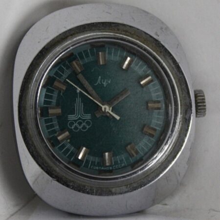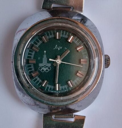 Montre célébrant les Jeux olympiques de Moscou de 1980 avec sur le cadran le logo des jeux