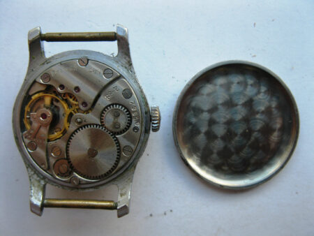 Le cadran de ce modèle a été repris pour un Pobeda à boîtier en aluminium (voir ici)