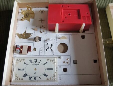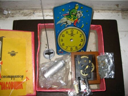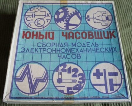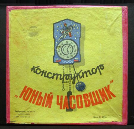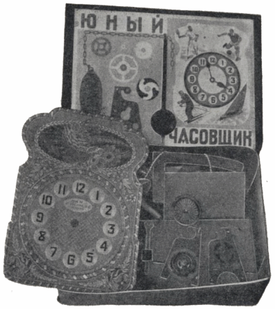 L’histoire du jouet polytechnique commence dans les années d’avant-guerre. Le catalogue Montres et accessoires de montres, maison d’édition de catalogues du Comité national de l’URSS publié en 1940, présente cette horloge en kit « Jeune horloger » au prix de vente de 4 roubles. 45 kopecks (5 roubles 35 kopecks avec un cadran verni) produite par la 2e Fabrique de montres de Moscou: