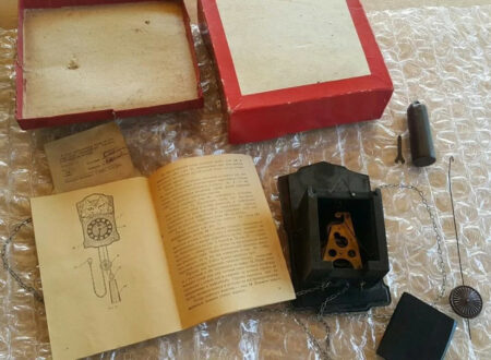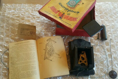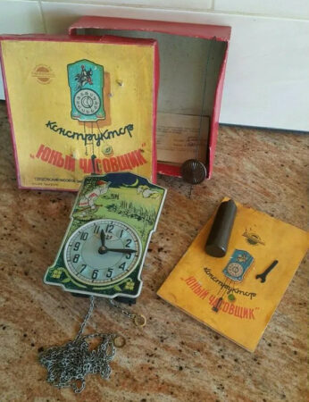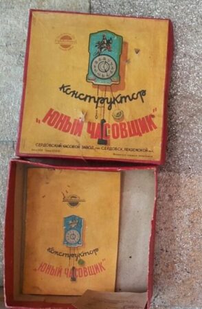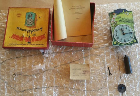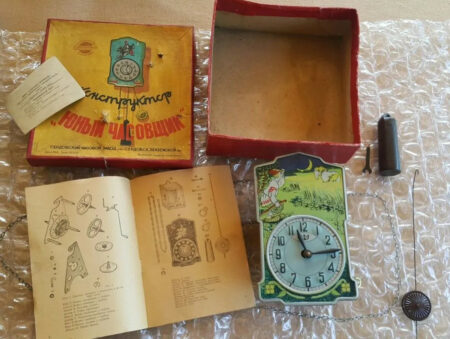 Kit pédagogique de la Fabrique d’Horloges de Serdobsk pour la construction d’une horloge à pendule khodiki en fer blanc. C’est un kit de la série « Jeune horloger ».Mécanisme: MЧ (57100 selon la nouvelle nomenclature)