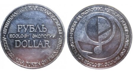 Un autre objet commémoratif de ces régates, portant le même logo, une pièce symbolique d’un rouble/ un 1 dollar US: