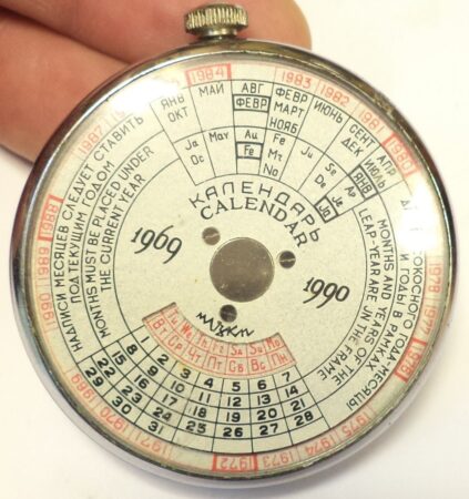 La couronne actionne un disque qui, plaçant tel mois sur telle année, indique le jour correspondant à la date. C’est le système que l’on retrouve sur les Raketa « Millenium »