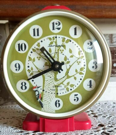 Réveil-matin pour enfant de la Fabrique d’Horloges d’Orel.Marque: YantarLe pivert est en mouvement quand le réveil fonctionne.Mécanisme: 6973Diamètre: 11cmDiamètre du cadran: 10cmHauteur: 14cmVoir un autre type de ce modèle