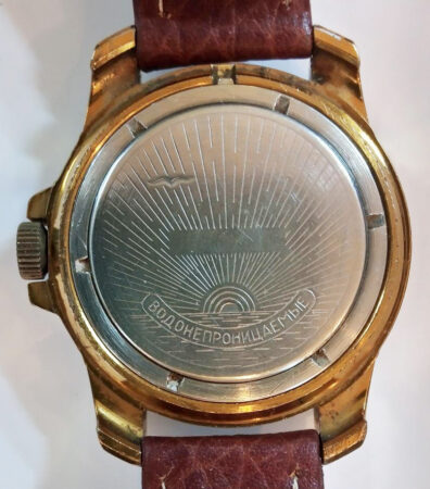 Gravure sur le fond : водонепроницаemыe (étanche), sans numéro, avec mouette et soleil levant