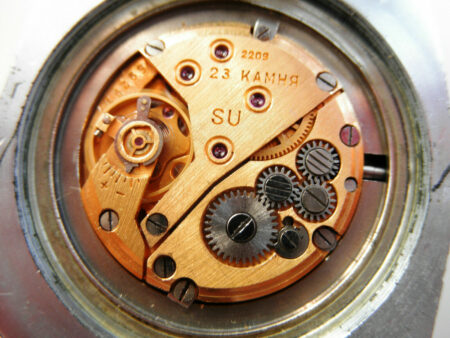 Mécanisme : Luch 2209 à 23 rubis (métal jaune).
