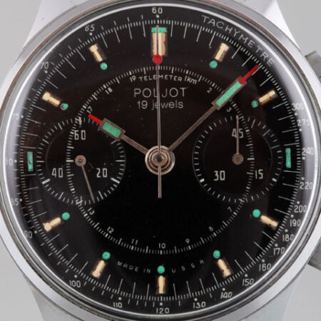 Ce chronographe de marque Poljot est une « Strela » de la 1ère Fabrique de Montres de Moscou produite pour l’exportation.