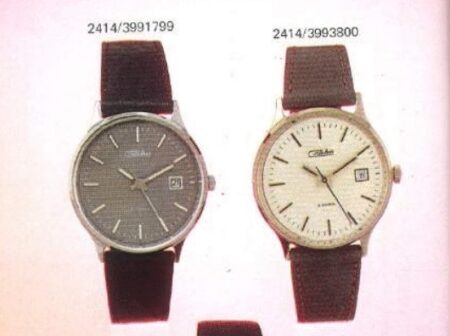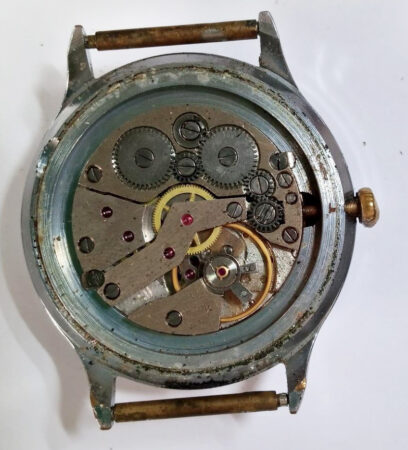 Mentions sur le calibre : Logo de la fabrique (un 2 dans un M), 2414 et SU (Soviet Union) le tout sur la platine.