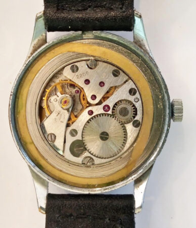 Mentions sur le calibre : N° de série (423976) et logo Vostok (B dans un cercle) sur la platine, 2209 et SU sur un pont.