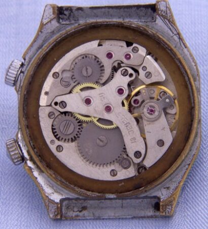 Mécanisme : Poljot 2612.1 (à alarme) avec comme marquage: 2612.1, 18 камней, et SU.