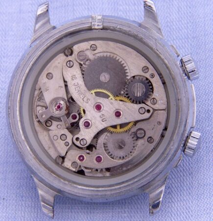 Mécanisme : Poljot 2612.1 (à alarme) avec comme marquage: 2612.1, 18 jewels, et SU.
