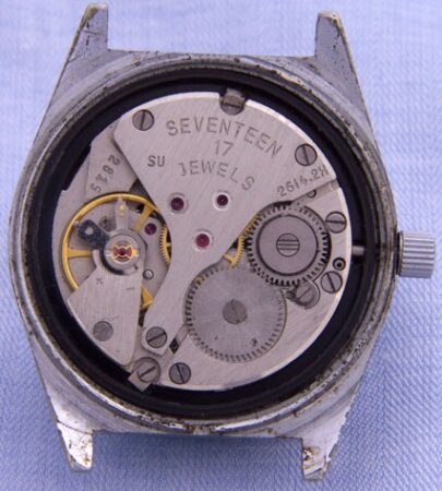 Mentions sur le calibre : n° de série (2815) sur la platine, SEVETEEN 17 JEWELS, SU, et 2614.2H sur le pont.