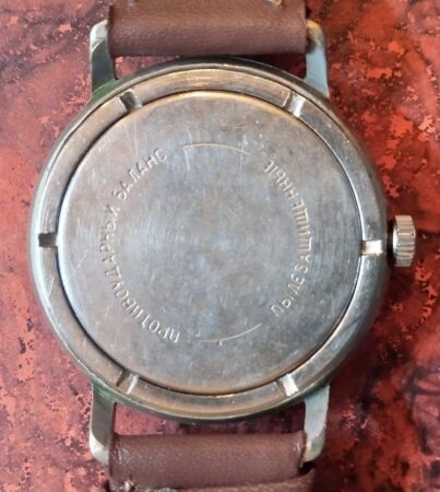 Gravure sur le fond : противоударные бaлaнз (mouvement antichoc) пылевлагозащищенные (étanche à l’eau et à la poussière), perlage à l’intérieur