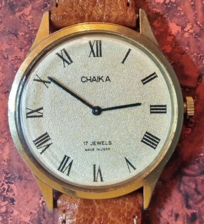 Montre, mécanique, sans seconde, plaquée or, pour l’export, de la Fabrique de Montres « Tchaïka », à Ouglitch