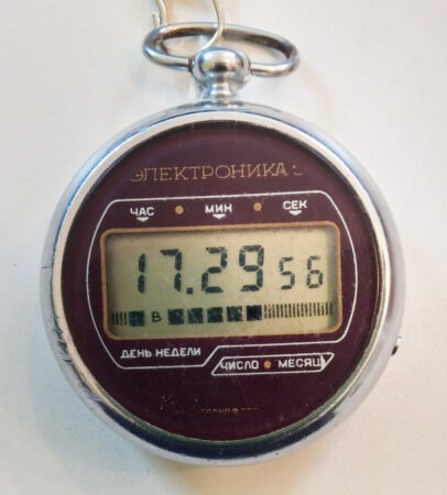 Montre de poche à quartz et LCD (écran à cristaux liquides) du Combinat électronique « Integral », à Minsk