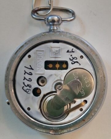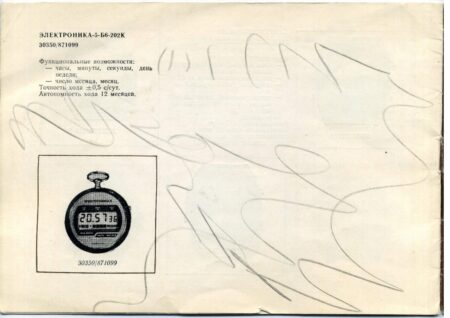 Mentions sur le calibre : 30350, logo de la fabrique Transistor de Minsk, 122239 et 7-85 à l’encre noire 95866 écrit manuellement à l’encre noire