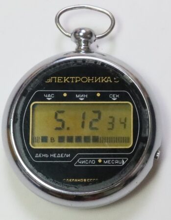 Montre de poche à quartz et LCD (écran à cristaux liquides) du Combinat électronique « Integral », à Minsk