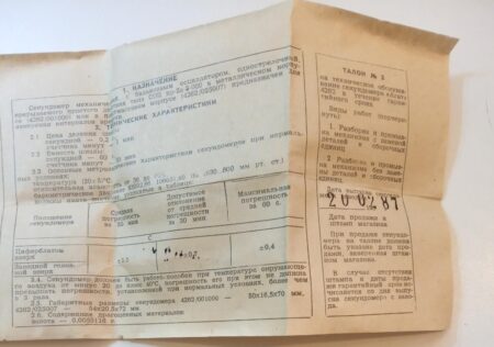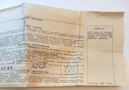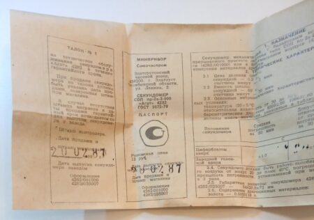 NOS avec boîte de plastique noir, son étiquette de contrôle qualité et son passeport du 20 février 1987.