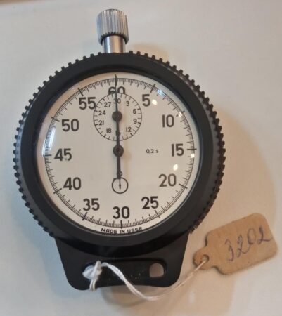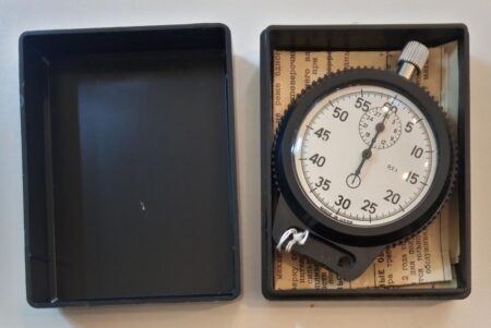 Chronomètre Agat à boîtier de plastique noir au cadran portant le logo de la Fabrique de Montres de Zlatoust